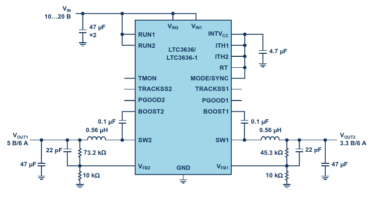 Рисунок 3. Высокоэффективный двухканальный понижающий регулятор