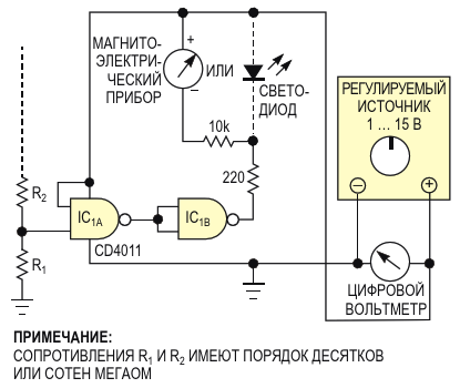 Высокоимпедансный вольтметр на основе логических элементов
