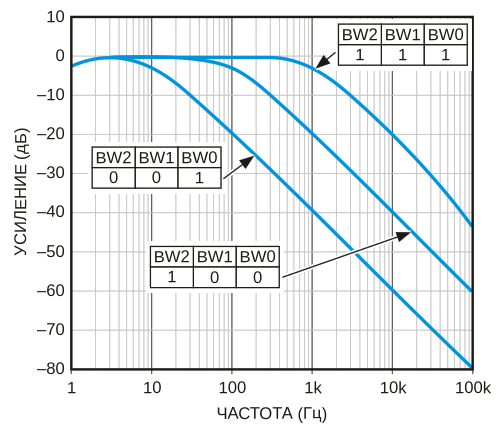 Малошумящий усилитель переменного тока с цифровым управлением усилением и полосой пропускания