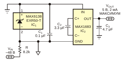 Эта небольшая и простая схема преобразует напряжение -48 В в 5 В