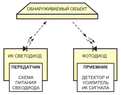 Рисунок 2. ИК приемопередатчик обнаруживает присутствие объекта и определяет приблизительное расстояние от приемопередатчика
