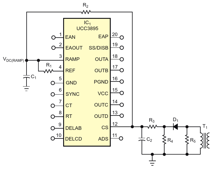 Дополнительный резистор R1 помогает улучшить работу популярного контроллера импульсного источника питания при легких нагрузках за счет устранения асимметрии выхода