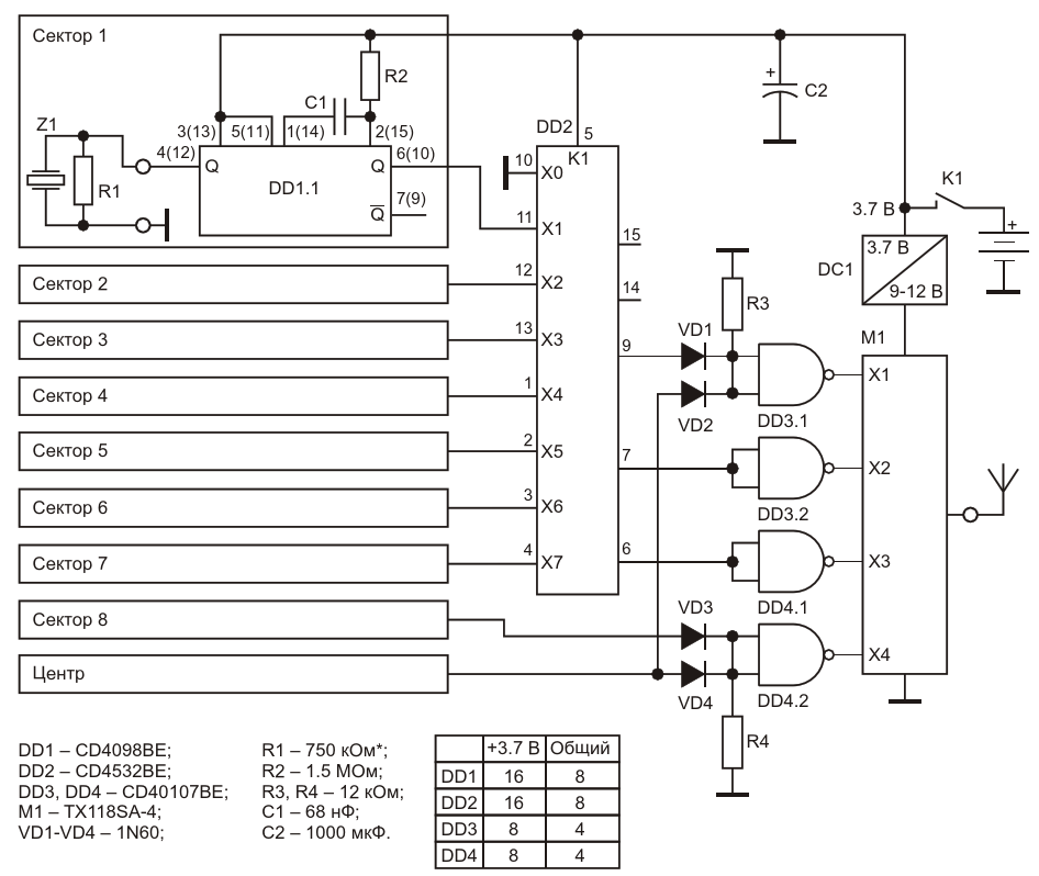 Рисунок 2. Принципиальная схема передающей части электронной мишени для страйкбола