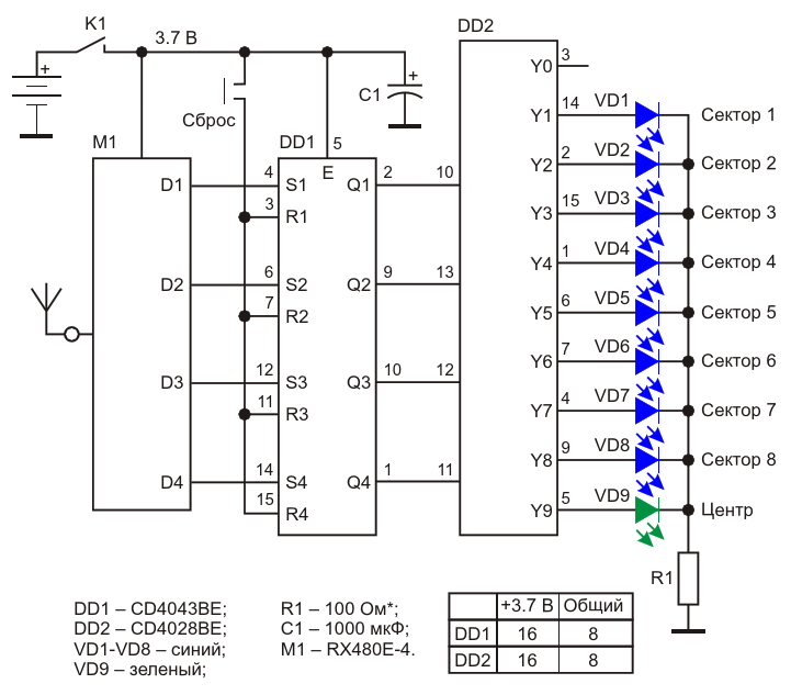 Принципиальная схема приемной части электронной мишени для страйкбола