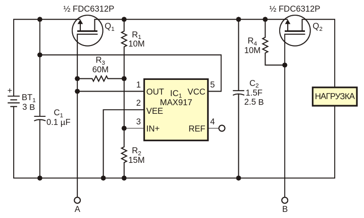 Ионистор помогает маленькой батарейке отдавать большие импульсы энергии