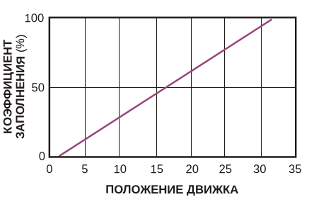 Рисунок 3. Коэффициент заполнения импульсов генератора на триггере Шмитта является линейной функцией положения движка потенциометра.