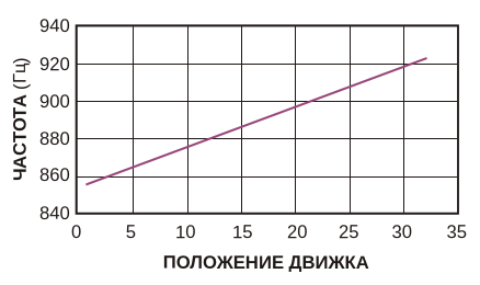 Частота также зависит от положения движка, но не влияет на характеристики схемы