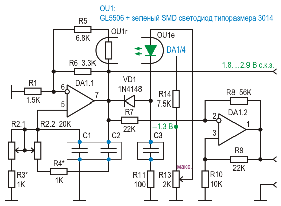 Рисунок 5. Схема «активной земли» для симметричного питания генератора