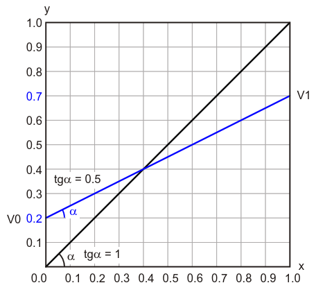 График зависимости показаний АЦП от входного напряжения в безразмерных координатах