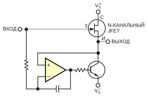 Операционный усилитель делает повторяемыми схемы с полевыми транзисторами