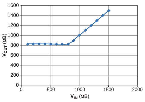 Рисунок 3. При токе нагрузки 0.5 мА выходное напряжение изменяется линейно от 4 мВ