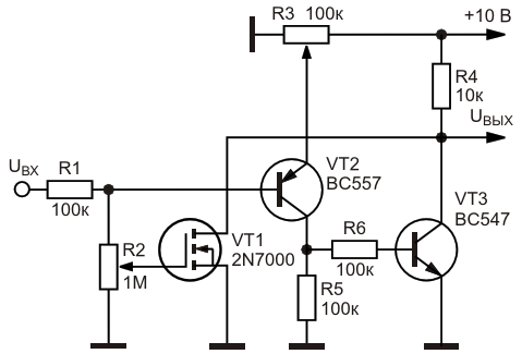Рисунок 3. Вариант оконного транзисторного ключа с минимальным порогом переключения