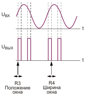 Рисунок 4. Использование оконного фильтра для управления прохождением входного сигнала