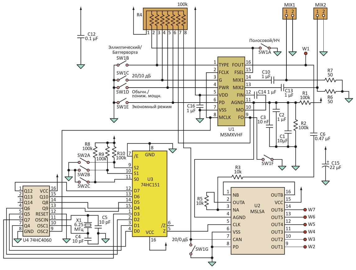Высокочастотный портативный анализатор спектра на двух микросхемах фильтров