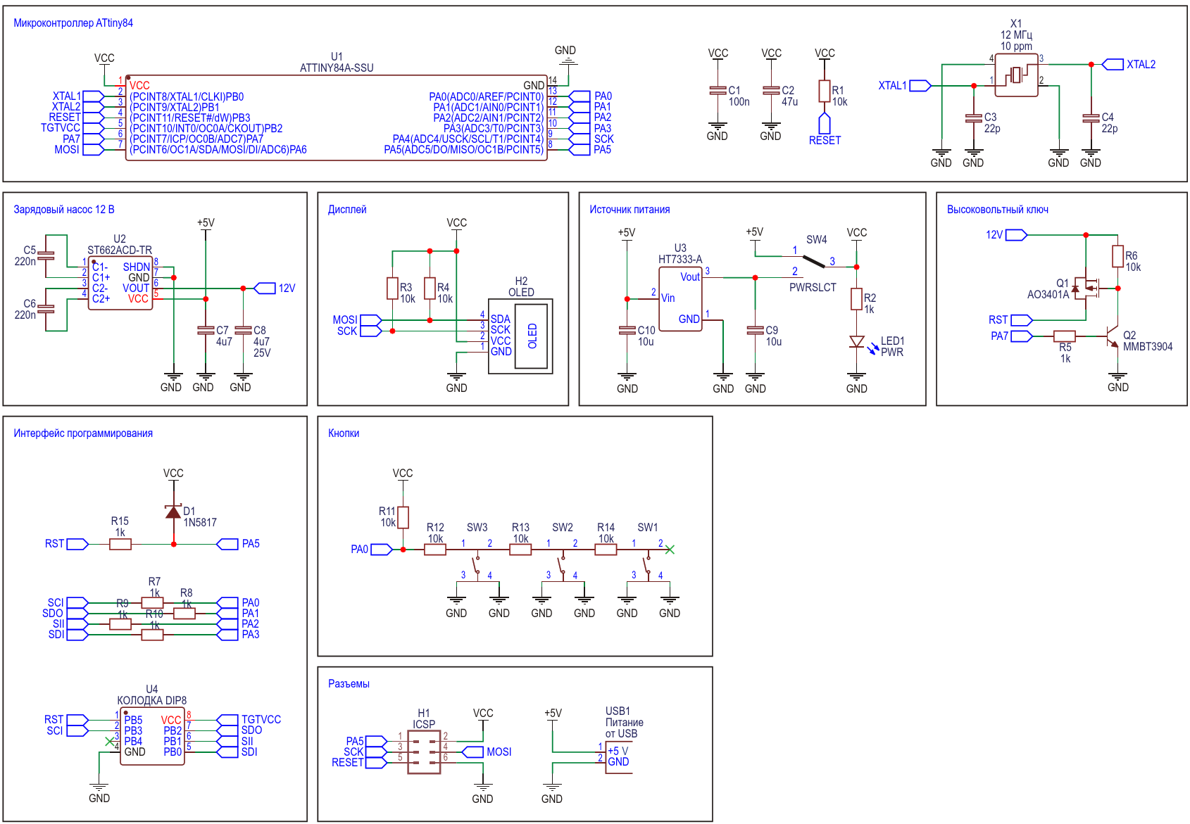 Принципиальная схема устройства для автоматической калибровки RC-осциллятора 8-выводных МК ATtiny