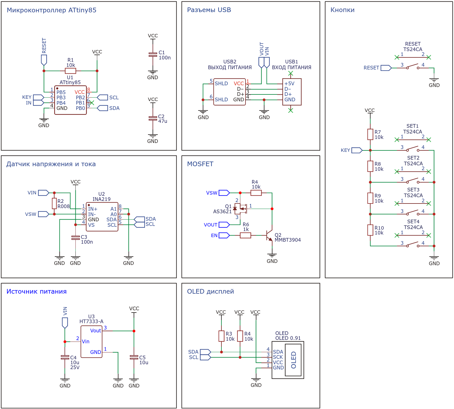 Принципиальная схема прибора для контроля зарядки Li-Ion аккумулятора