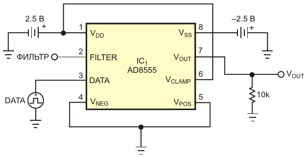 Рисунок 1. Программируемый инструментальный усилитель в миниатюрном 8-контактном корпусе LFCSP позволяет в последнюю минуту изменить величину биполярного опорного напряжения