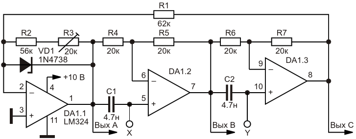 Рисунок 1. Трехфазный генератор синусоидального сигнала