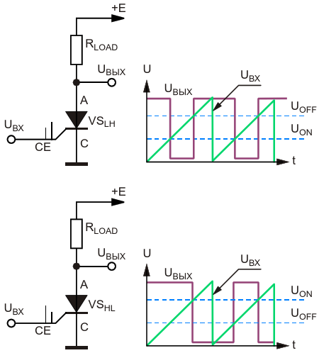 Рисунок 7. Использование двухпорогового LH- или HL-тиристора в качестве классического однопорогового т иристора