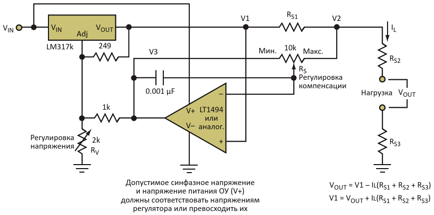 Компенсация сопротивления подводящих проводов улучшает стабилизацию напряжения