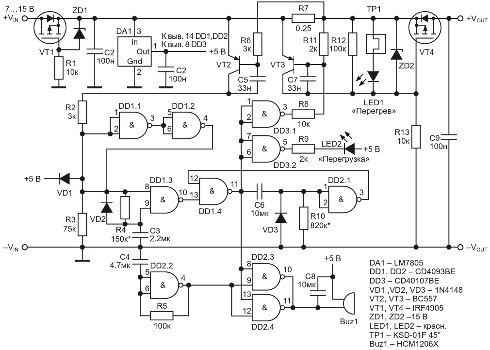 Принципиальная схема электронного предохранителя