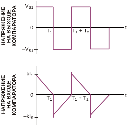 Рисунок 2. Форма сигналов на входе и выходе компаратора IC
