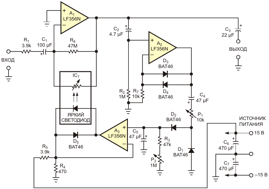 Рисунок 3. В контуре обратной связи системы адаптивного усилителя используется оптопара