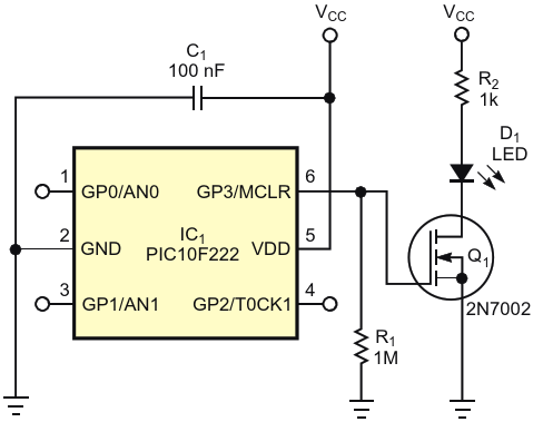 Добавление MOSFET и соответствующих цепей к входному контакту MCLR микроконтроллера PIC превращает этот контакт в выход