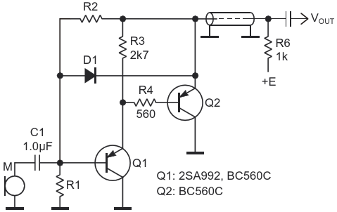 Рисунок 1. Простая схема усилителя подходит для индуктивных источников сигналов, таких как динамический микрофон, трансформатор или индуктивный датчик