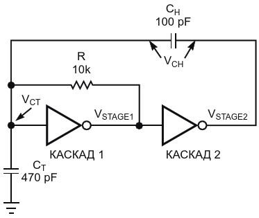 Рисунок 4. Гистерезис возникает в результате инжекции заряда из каскада 2, при котором напряжение на времязадающем конденсаторе превышает порог переключения на известную фиксированную величину