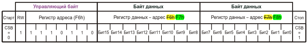 Последовательность многократного чтения по SPI (адреса скорректированы)
