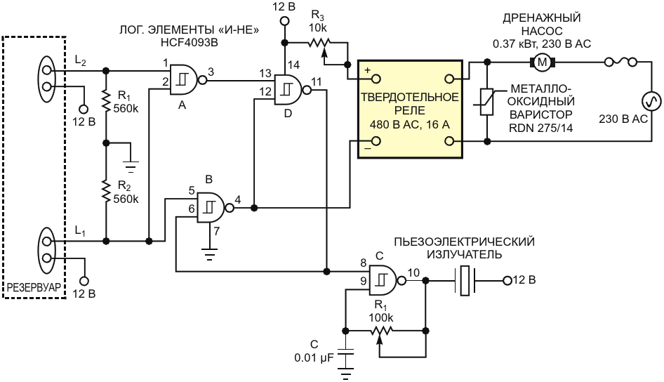 Логические элементы «И-НЕ» управляют дренажным насосом