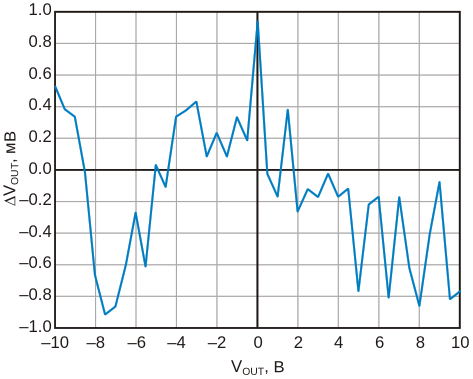 Рисунок 5. Отклонения экспериментальных результатов от линии наилучшего соответствия находятся в диапазоне ±1 мВ