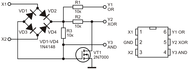 Универсальный логический элемент OR/XOR/AND на полевом транзисторе