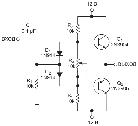 Рисунок 2. Транзисторы токового зеркала заменяют диоды в схеме на Рисунке 1