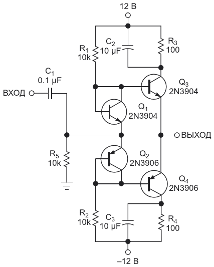 Рисунок 2. Транзисторы токового зеркала заменяют диоды в схеме на Рисунке 1