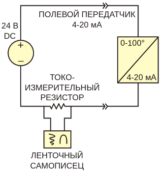В промышленных приложениях широко используется базовая структура токовой петли 4-20 мА