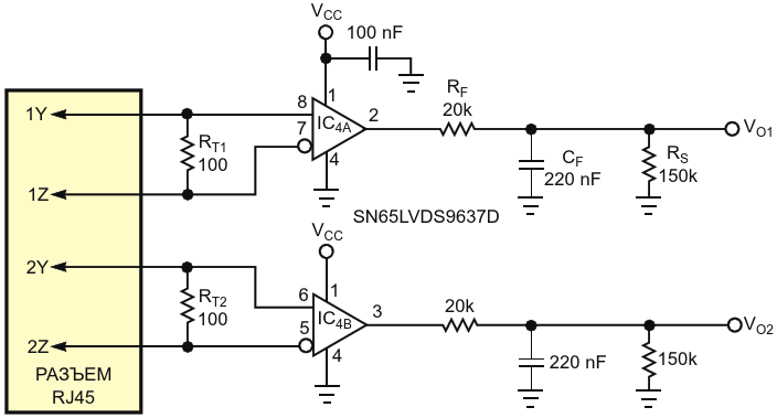 в оконечном устройстве преобразует сигналы, полученные от интерфейса, в уровни LVTTL, а затем подает их на набор пассивных фильтров