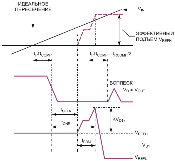 Инжекция заряда может вызвать всплески напряжения на выходе компаратора напряжения, и эти всплески могут привести к логическим ошибкам