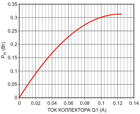 Рисунок 3. Зависимость мощности, выделяемой на транзисторе Q