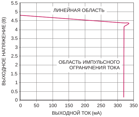 Импульсный режим ограничения удерживает ток в схеме на Рисунке 3 на уровне примерно 320 мА