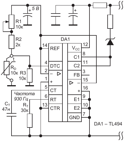 Рисунок 4. Измерение температуры. Поименованы только элементы, участвующие в процессе