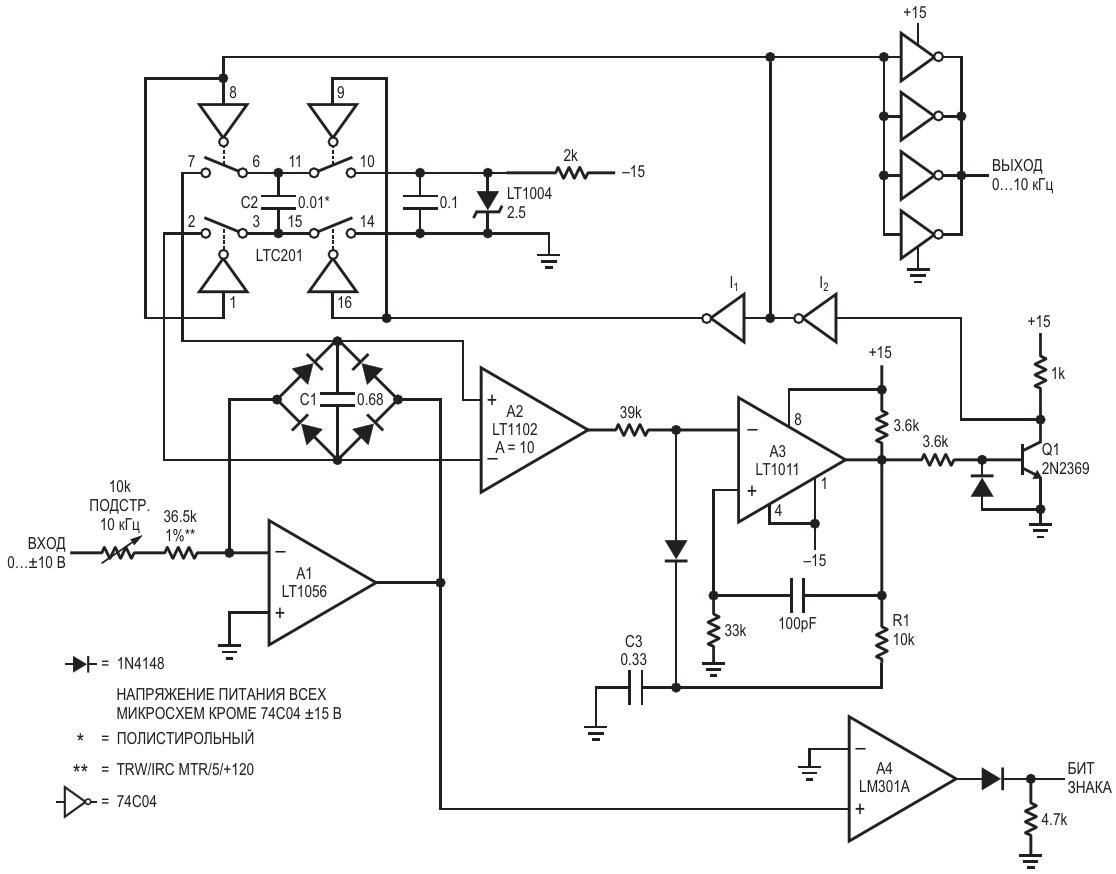 Преобразователь напряжение-частота для биполярных входных сигналов