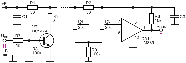 Рисунок 3. Передача цифровой информации через цепь питания с использованием компаратора на приемной стороне