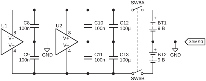 Рисунок 4. Принципиальная схема аттенюаторов 3/10/13 дБ и разъемов внешнего фильтра