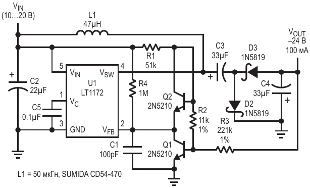 Обратная связь в преобразователях с отрицательным выходным напряжением