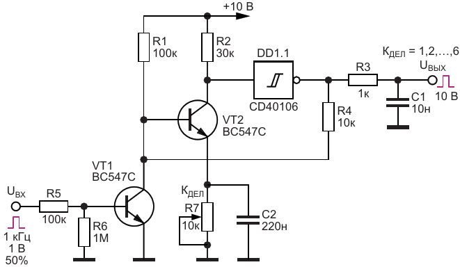 Рисунок 3. Управляемый целочисленный делитель частоты с использованием бистабильного электронного переключателя