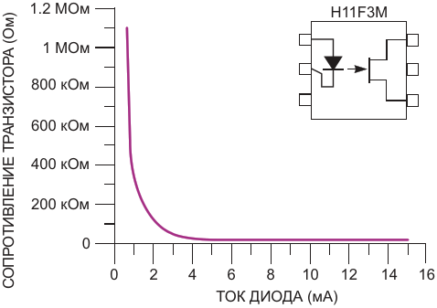 Выходное сопротивление полевого фототранзистора имеет нелинейную зависимость от тока входного светодиода