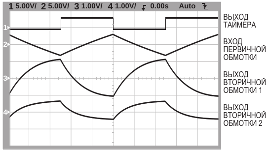 Рисунок 3. Хотя форма сигналов на вторичной стороне отличается от сигнала возбуждения, это не имеет значения из-за присущих LVDT фильтрующих свойств