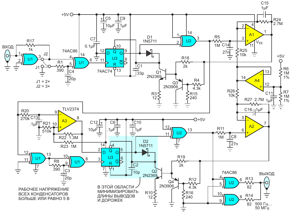 50-мегагерцовый удвоитель/учетверитель частоты с коэффициентом заполнения выходных импульсов 50%